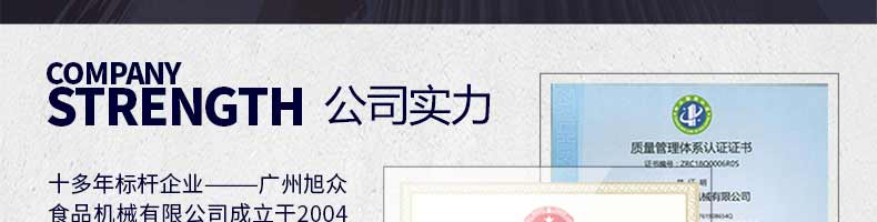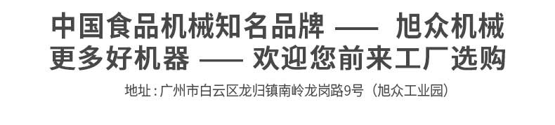 廣州旭眾食品機(jī)械有限公司是一家集科研開發(fā),生產(chǎn)設(shè)計(jì),營銷服務(wù)為一體的現(xiàn)代化生產(chǎn)企業(yè)。現(xiàn)代化生產(chǎn)車間,精湛制造技術(shù),所產(chǎn)機(jī)械歷經(jīng)市場重重考驗(yàn),不斷贏得海內(nèi)外客戶的贊譽(yù)。
