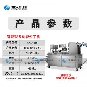 名稱XZ-290AS智能型卷面包子機 電源220/380v 功率4.05kw 產量0-3600個/h 尺寸3280*1500*1420mm 重量480kg 規格 其他