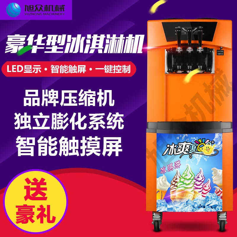 BQL-928立式冰淇淋機,1.選用國際牌壓縮機,輔以旭眾精湛工藝,大大縮短冰淇淋成型時間,高效節能;2.全新液晶智能觸控面板,簡單明了,多功能易操作;3.全新升級專業膨化泵,膨化率高,產量增加30%;4.一鍵清洗功能,省時方便;5.主要部件采用不銹鋼材質,時尚美觀,持久耐用;6.先進的機械攪拌系統,機器運行穩定可靠,低噪音,產品口感爽滑細嫩。