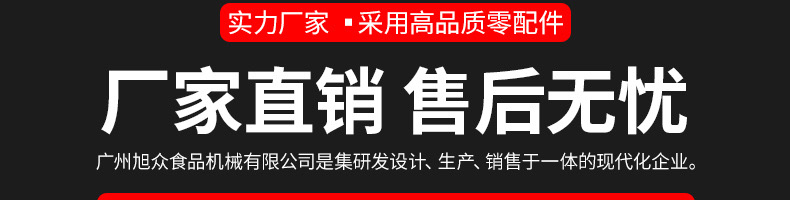 廣州旭眾食品機械有限公司是一家集科研開發(fā),生產(chǎn)設(shè)計,營銷服務(wù)為一體的現(xiàn)代化生產(chǎn)企業(yè)。現(xiàn)代化生產(chǎn)車間,精湛制造技術(shù),所產(chǎn)機械歷經(jīng)市場重重考驗,不斷贏得海內(nèi)外客戶的贊譽。