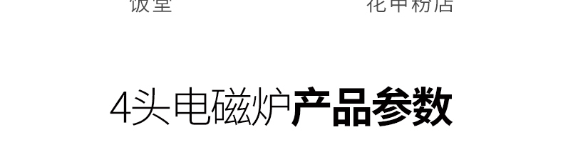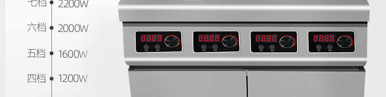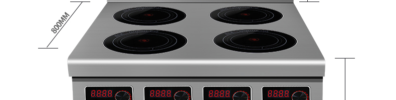 名稱四頭柜式電磁爐 電源220V 功率3.5KW×4 產量聯系銷售員 尺寸800×800×800+120M 重量聯系銷售員 規格頭數:4頭 其他