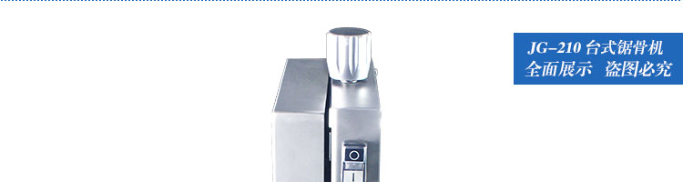 JG-210臺式鋸骨機,適用于各類骨頭,冷凍肉,帶魚骨,冰塊,冷凍魚的分割。采用全不銹鋼材料制作,具有工作效率高,操作安全的特點。廣泛適用于食品加工廠,屠宰場,肉類加工廠等