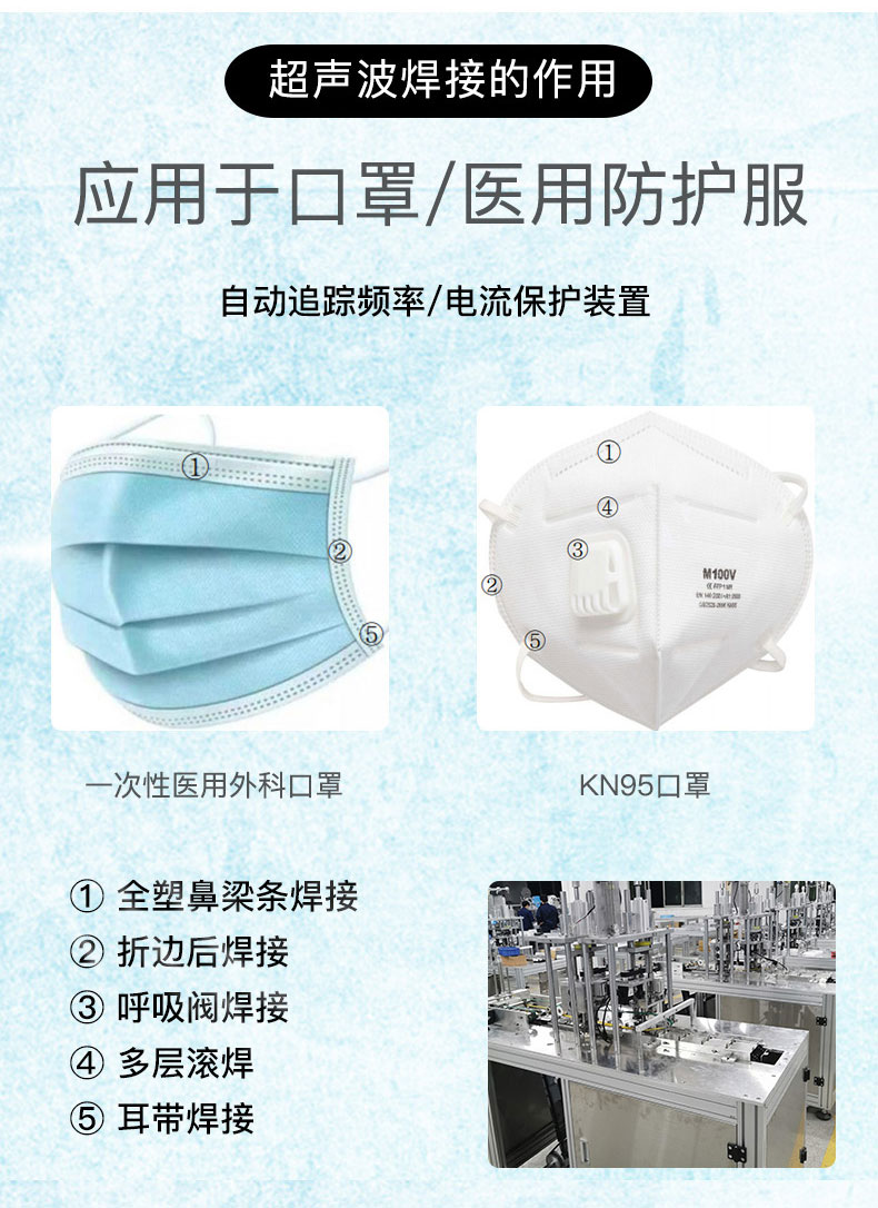 名稱口罩機15K/20K超聲波系統 電源 功率2000w-3000w 產量詳情咨詢13113134411 微信13113134411蔣經理 尺寸詳情咨詢13113134411 微信13113134411蔣經理 重量詳情咨詢13113134411 微信13113134411蔣經理 規格 其他頻率 15KHZ-20KHZ