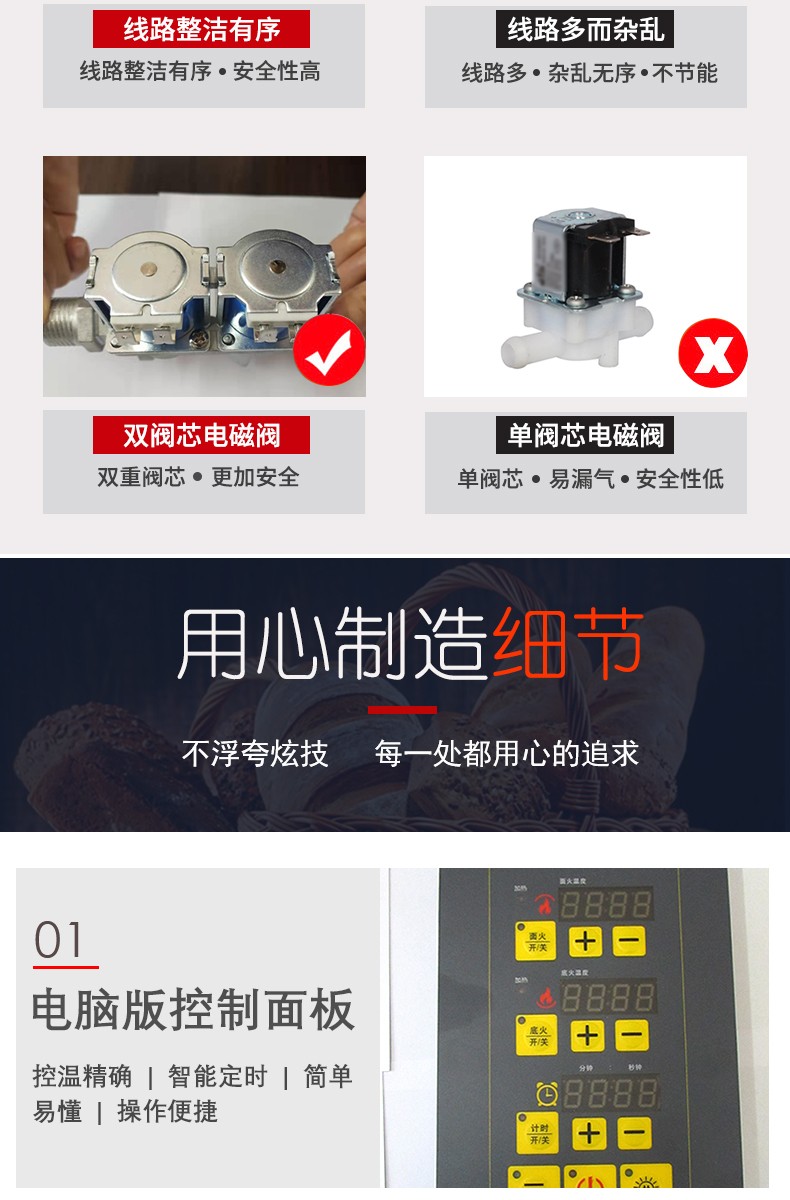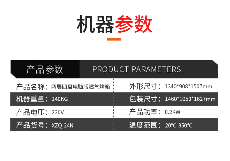 名稱兩層四盤電腦版燃氣烤箱 電源220V 功率0.2KW 產量 尺寸1340*908*1507mm 重量240KG 規格兩層四盤 其他