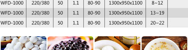 VFD-1000無餡湯圓機,本機可生產(chǎn)無餡湯圓、珍珠湯圓、桂花湯圓、奶茶所用的珍珠、檳榔紅丸、工藝品等。規(guī)格有8-34mm,可根據(jù)客戶要求定制。適用于個體戶、食品廠、學校等單位食堂。可滿足不同客戶群體。免費提供工藝技術。