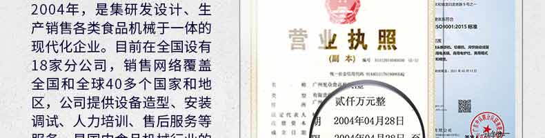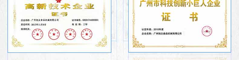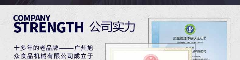 廣州旭眾食品機(jī)械有限公司是一家集科研開發(fā),生產(chǎn)設(shè)計(jì),營銷服務(wù)為一體的現(xiàn)代化生產(chǎn)企業(yè)。現(xiàn)代化生產(chǎn)車間,精湛制造技術(shù),所產(chǎn)機(jī)械歷經(jīng)市場(chǎng)重重考驗(yàn),不斷贏得海內(nèi)外客戶的贊譽(yù)。