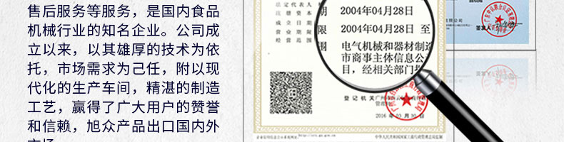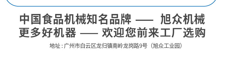 廣州旭眾食品機(jī)械有限公司是一家集科研開發(fā),生產(chǎn)設(shè)計(jì),營(yíng)銷服務(wù)為一體的現(xiàn)代化生產(chǎn)企業(yè)。現(xiàn)代化生產(chǎn)車間,精湛制造技術(shù),所產(chǎn)機(jī)械歷經(jīng)市場(chǎng)重重考驗(yàn),不斷贏得海內(nèi)外客戶的贊譽(yù)。