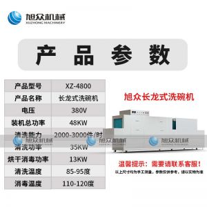 XZ-4800長龍式洗碗機,碗如新生,旭眾長龍式洗碗機。環繞噴淋技術繞體循環用水/油污分離快速潔凈。食品級304不銹鋼堅固耐用,耐高溫抗腐蝕,易于清洗,安全有保障。