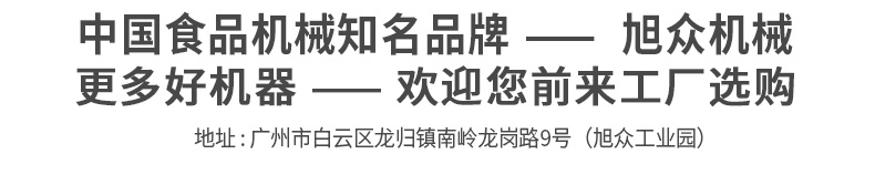廣州旭眾食品機械有限公司是一家集科研開發,生產設計,營銷服務為一體的現代化生產企業?,F代化生產車間,精湛制造技術,所產機械歷經市場重重考驗,不斷贏得海內外客戶的贊譽。