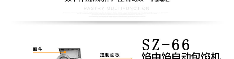 名稱SZ-66餡中餡包餡機 電源220v/380v 功率23.kw 產量30-80只/分鐘 尺寸1160*920*1520mm 重量480kg 規格20-150克/只 其他