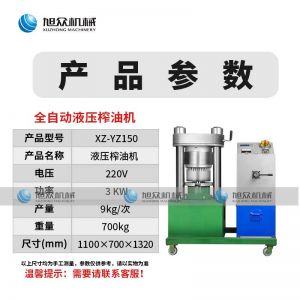 名稱XZ-YZ150型液壓榨油機 電源220v 功率3kw 產量9kg/次 尺寸1100*700*1320mm 重量700kg 規格 其他